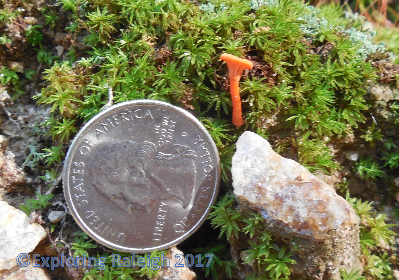These little guys are easy to miss. They look like little bits of orange peel left on the trail. As you can see from from the second picture, they really are small.